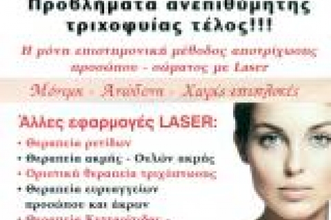 Ιατρικό κέντρο δερματολογίας, ιατρικής αισθητικής laser, προβλήματα ανεπιθύμητης τριχοφυΐας, εφαρμογές laser, τριχοριζόγραμμα, δερματοσκόπηση, χαρτογράφηση μελαγχρωματικών σπίλων, διενέργεια δερματικών αλλεργικών test, μεσοθεραπείες, αντιγήρανση, μεσοθεραπεία προσώπου για αντιγήρανση και ανάπλαση, μεσοθεραπεία σώματος για κυταρίττιδα και αδυνάτισμα.